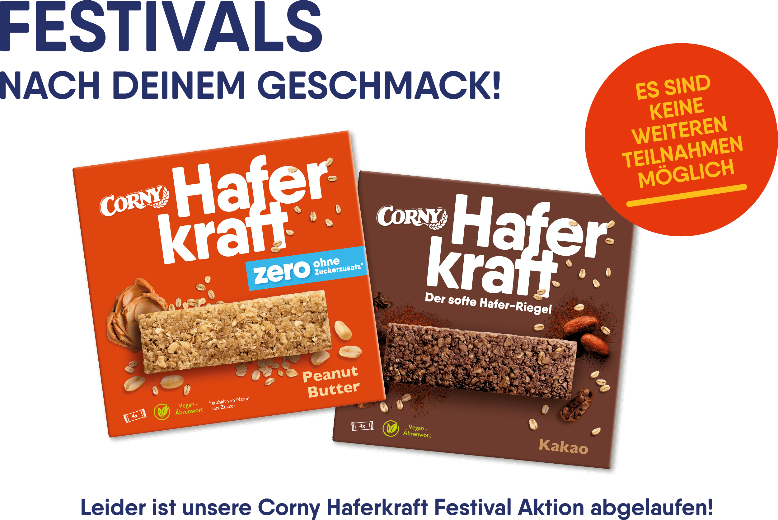 Für die Teilnahme an der Corny Haferkraft Festival Aktion der Marken Corny Haferkraft 140 g und Corny Haferkraft zero 140 g gelten die folgenden Bedingungen: